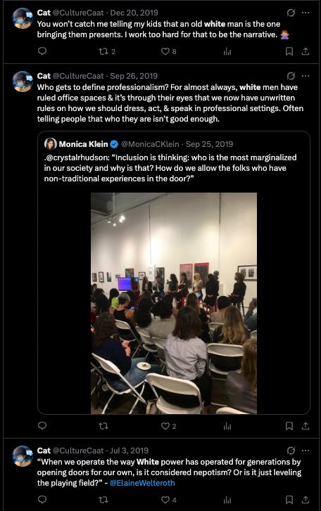 ““When we operate the way White power has operated for generations by opening doors for our own, is it considered nepotism? Or is it just leveling the playing field?” -@ElaineWelteroth” she wrote on July 3, 2019.