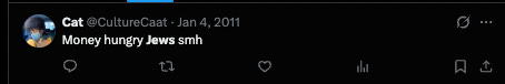 “Money hungry Jews smh” Mamdani’s Director of Appointments, Catherine Almonte Da Costa, posted on X on January 4, 2011.