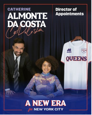 “Welcome to A New Era, Catherine Almonte Da Costa!” Mamdani posted on Instagram yesterday. “Cat’s spent over a decade in public service and personnel management, building strong teams across government.